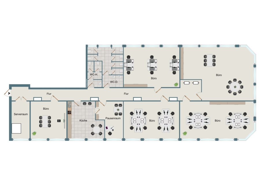 - Geräumige Besprechungs- und Aufenthaltsräume