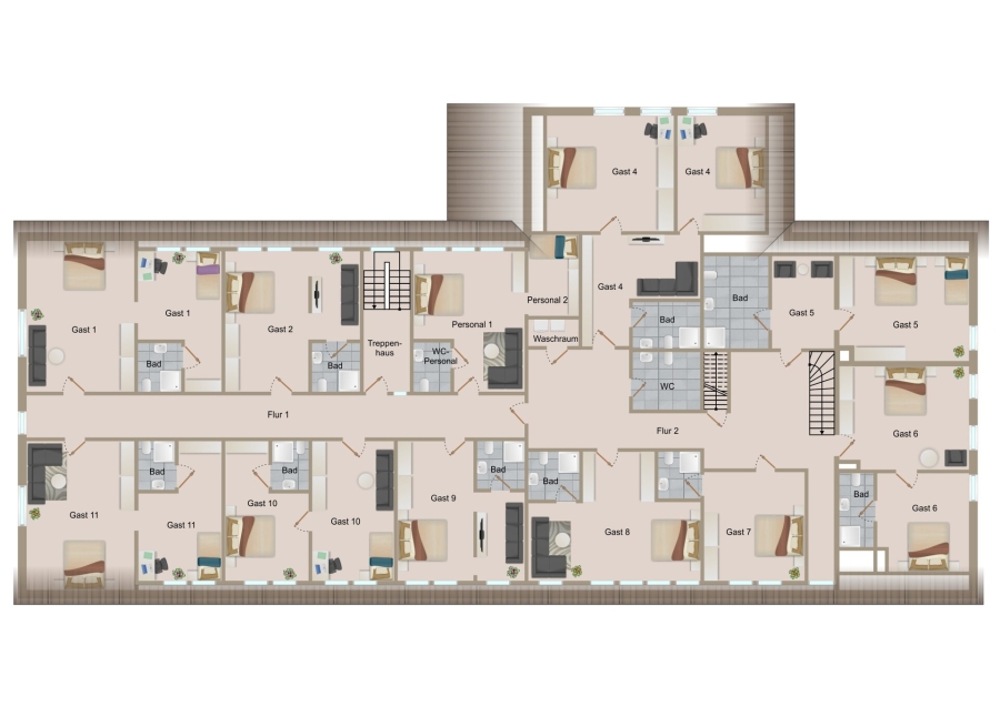 - 11 Gäste-Zimmer/Wohnungen mit überwigend Duschbädern