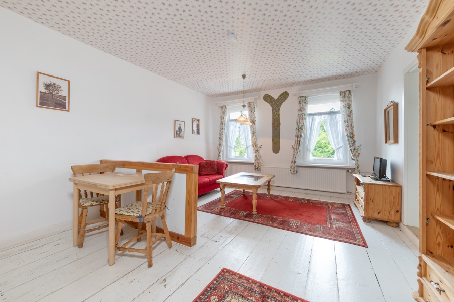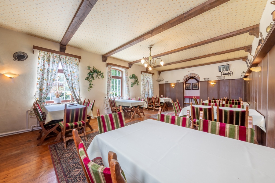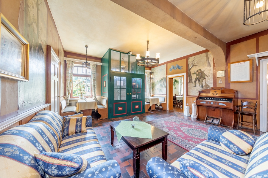 Zum Verkauf steht das Haupthaus mit ca. 1.000 m² Wohn- und Gastrofläche. Zusätzlich kann für einen Aufpreis das nebenstehende Wohnhaus (Wohn-/Nutzfläche ca. 250 m², Grdst. ca. 1200 m², € 350.000) und/oder eine direkt anliegende Grundstücksfläche (ca. 4.000 m², € 200.000) dazu erworben werden.