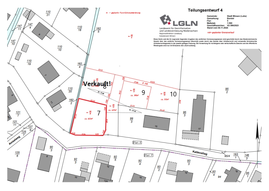 Das Grundstück Nr. 7 (siehe Lageplan) bietet mit 622 m² ausreichend Platz für die Errichtung eines Doppelhauses oder eines Einfamilienhauses.