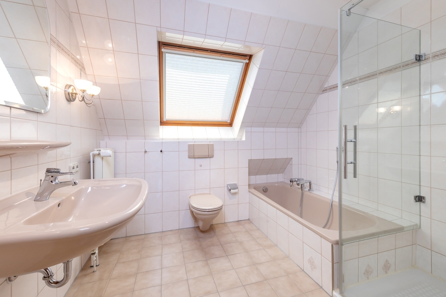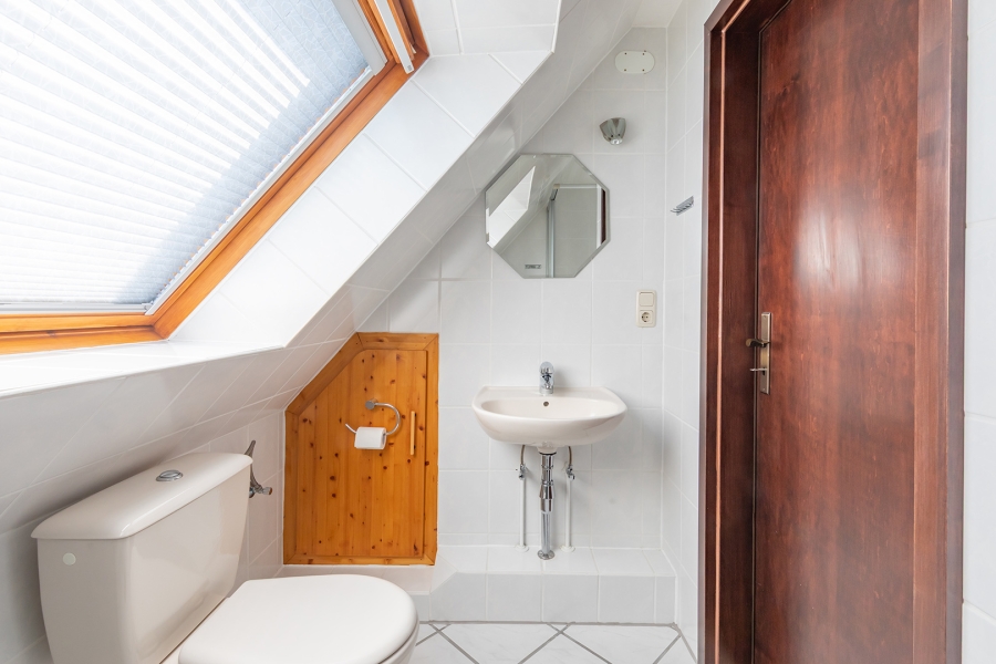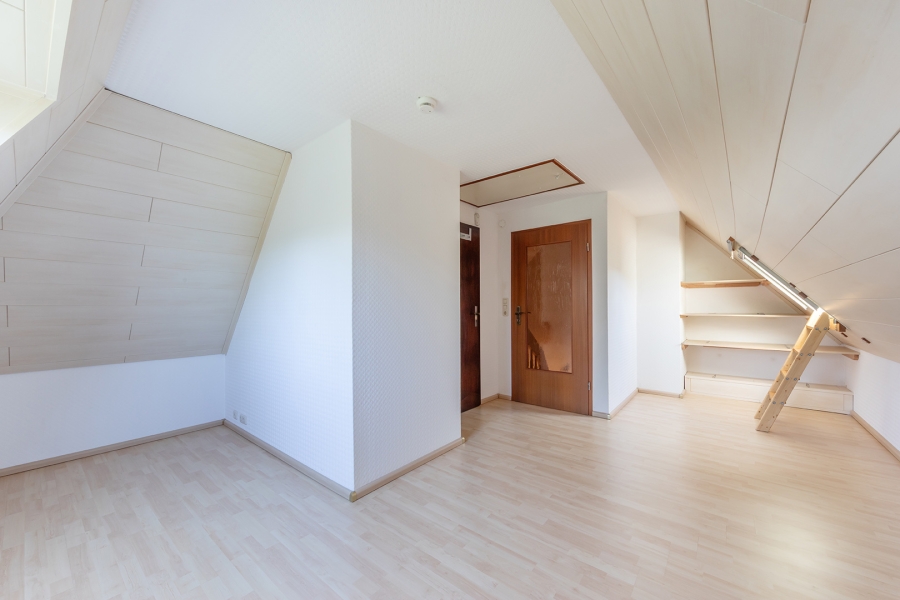 Der Spitzboden ist mit einem Großen Raum sowie einem Duschbad wohnlich ausgebaut.