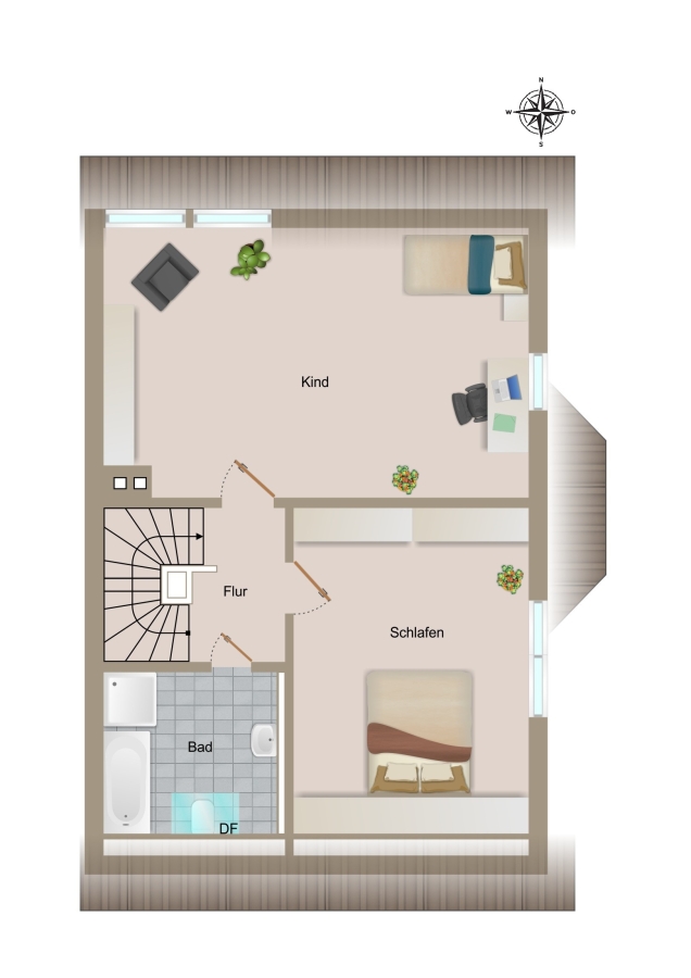 -3 Zimmer + Wohnlich ausgebauter Spitzboden