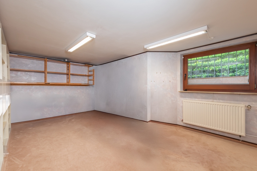 Auch der Keller ist ausgebaut und bietet neben praktischen Abstellflächen einen separaten Büroraum, der sich ideal für Homeoffice oder Hobbyzwecke eignet.