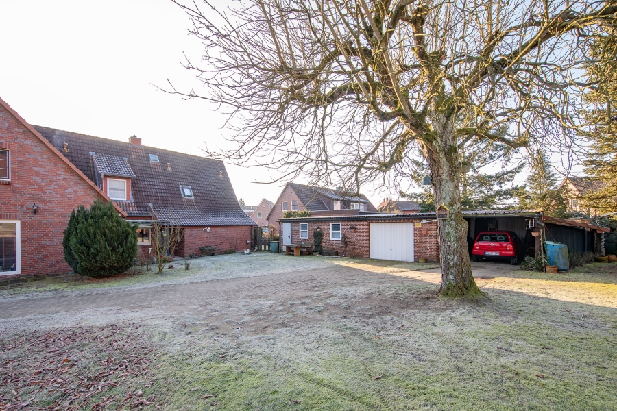 Die überdachte Terrasse bietet zusätzlichen Wohnkomfort im Außenbereich. Ihr Auto parkt in einer Garage oder auch unter dem geschützten Carport. Die Garage verfügt außerdem über einen Abstellraum, für Ihre Gartengeräte.