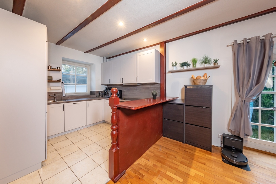 Das Herzstück des Hauses ist der gemütliche Wohnbereich. Hochwertiges Eichenparkett und eine angenehme Fußbodenheizung schaffen ein behagliches Ambiente. Die liebevoll gestaltete Landhausküche lädt zum Kochen und Verweilen ein.