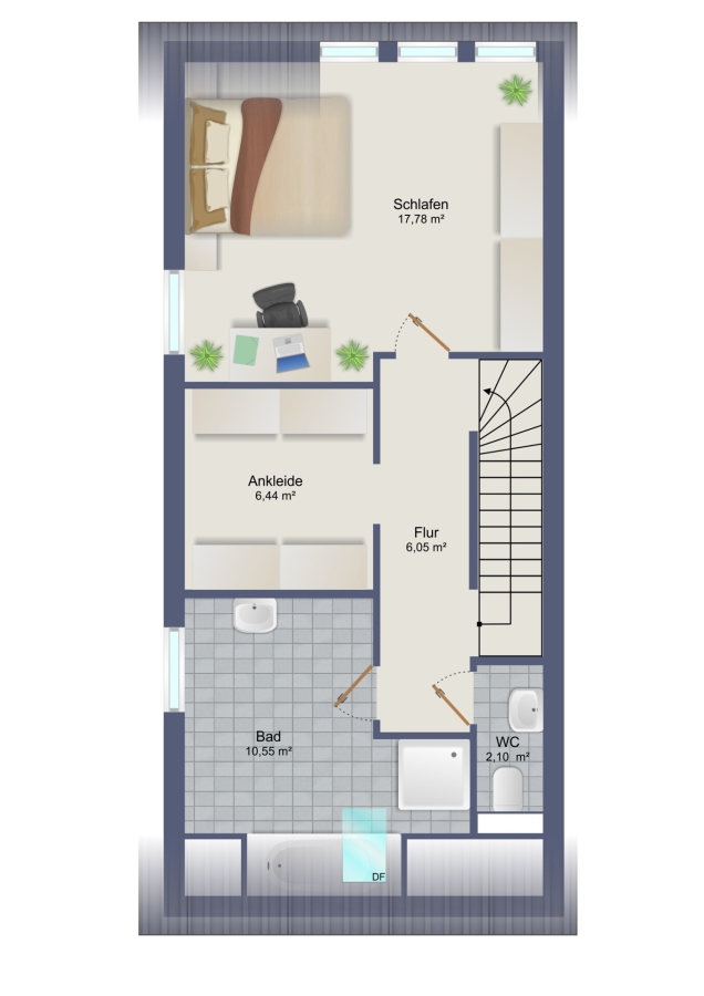 Ein ausgebauter Spitzboden schafft weitere vielseitig nutzbare Fläche.