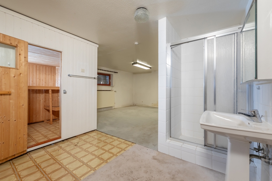 Der Bungalow ist voll unterkellert. Große Teile des Kellers sind wohnlich ausgebaut und bieten zusätzlich ein Duschbad und eine Sauna.