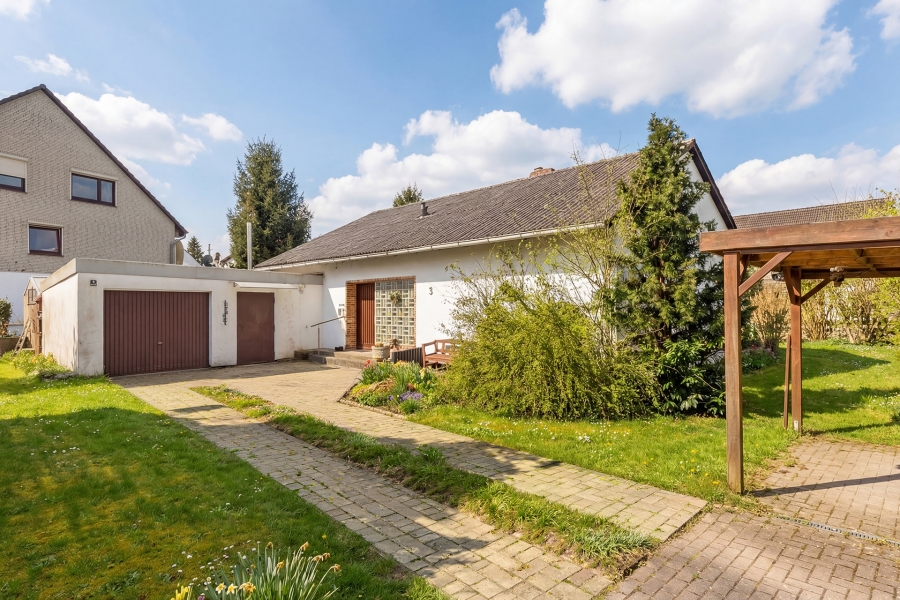 Dieser gepflegte Bungalow wurde im Jahr 1970 auf einem Grundstück von 1.030 m², mit Raum für einen weiteren Bauplatz, errichtet und bietet mit ca. 105 m² Wohnfläche ein durchdachtes Wohnkonzept auf einer Ebene.