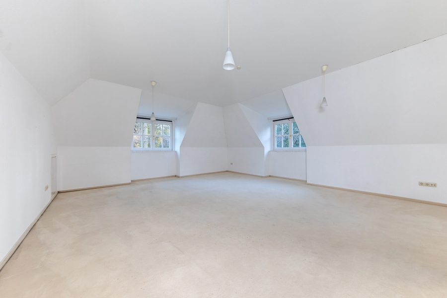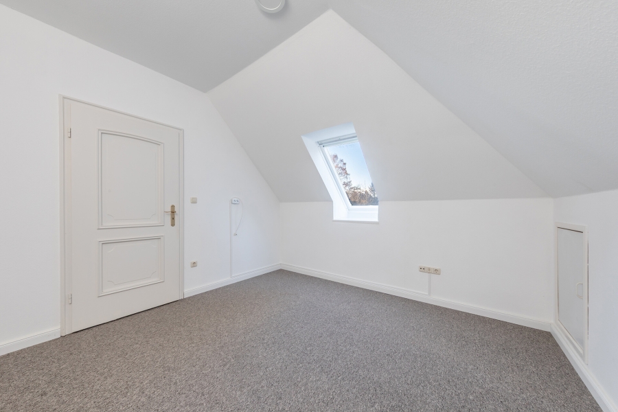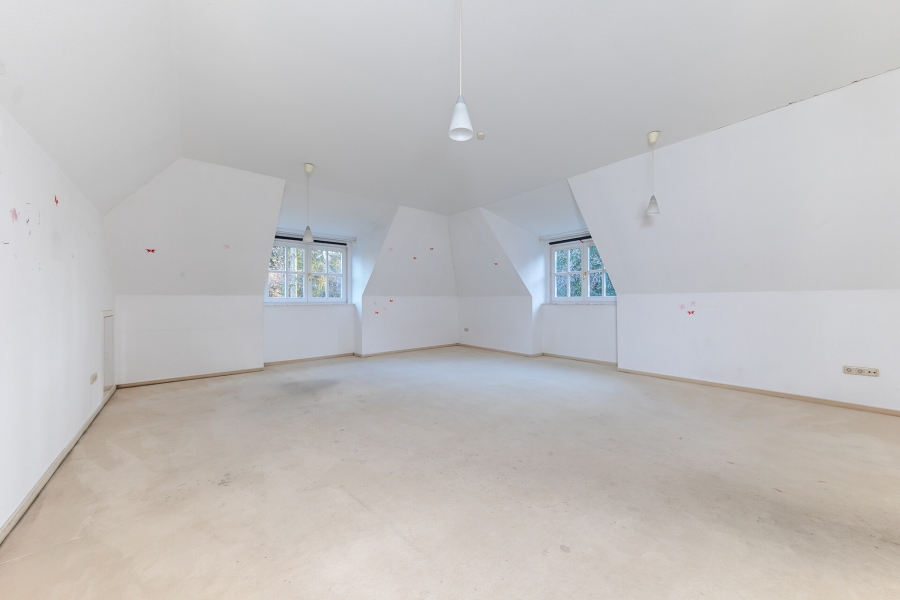 Weiterhin befinden sich im Dachgeschoss zwei großzügige Schlafzimmer, ein Gästezimmer und ein weiteres Vollbad im Rohbauzustand. Der Vollkeller bietet viele Abstell- und Vorratsräume und ist teilweise wohnlich ausgebaut.