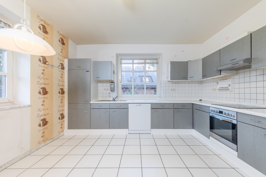 Die großzügige und helle Küche einschließlich Speisekammer kann als Ort für Frühstück, Mahlzeiten oder als gemütlicher Treffpunkt für die Familie dienen.