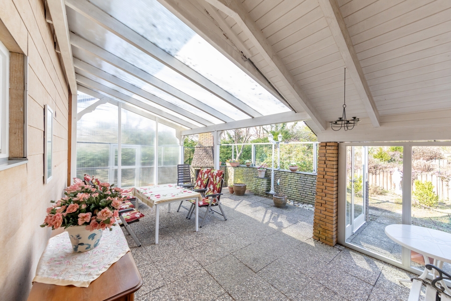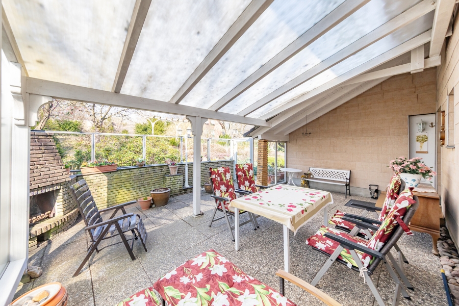 Im Außenbereich lädt eine Terrasse zum Entspannen ein, während ein Außenkamin für gesellige Stunden sorgt. Eine Garage und ein Carport runden das Angebot ab.