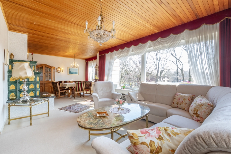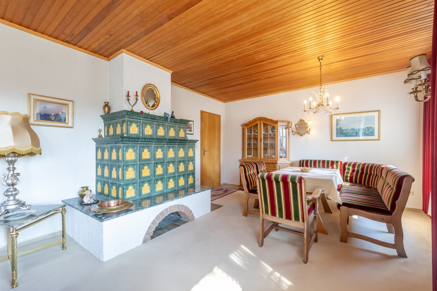 Ein besonderes Highlight ist der gemütliche Kachelofen, der in der kalten Jahreszeit für eine behagliche Atmosphäre sorgt. Ergänzt wird die Ausstattung durch eine Ölzentralheizung mit vier Tanks à 2.000 Litern.