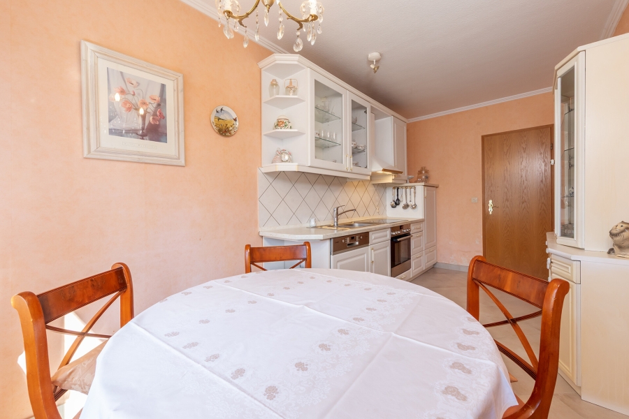 Die vorhandene Einbauküche ist funktional ausgestattet und bietet ausreichend Platz zum Kochen und Verweilen. Das Tageslicht-Duschbad rundet das Angebot ab.