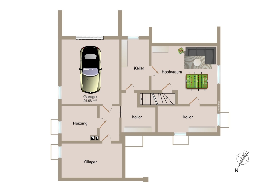 Das Haus ist voll unterkellert und bietet mit vier Kellerräumen viel Stauraum und Nutzungsmöglichkeiten – nahezu alle Räume sind beheizt. Zusätzlich befindet sich im Keller ein weiteres WC.