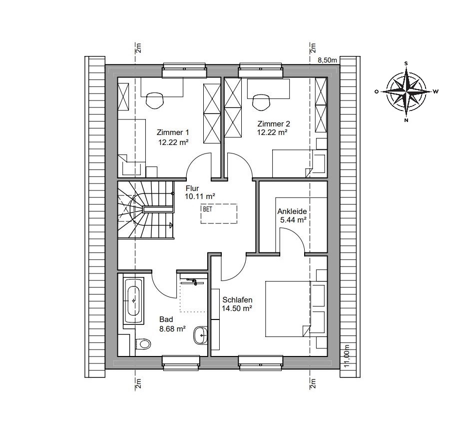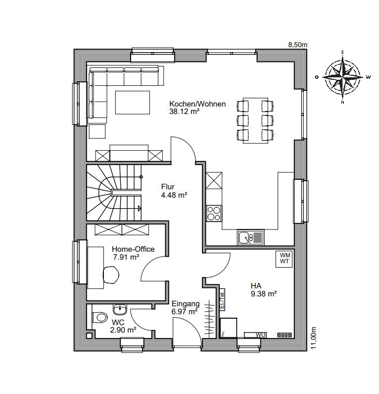 Das geplante Einfamilienhaus bietet auf ca. 132 m² Wohnfläche fünf gut geschnittene Räume. Drei Schlafzimmer, ein Büro und ein großzügiges Wohnzimmer schaffen Platz für Familie und Homeoffice. Ein praktischer Hauswirtschaftsraum ergänzt das durchdachte Raumkonzept und sorgt für zusätzlichen Stauraum und Ordnung im Alltag.