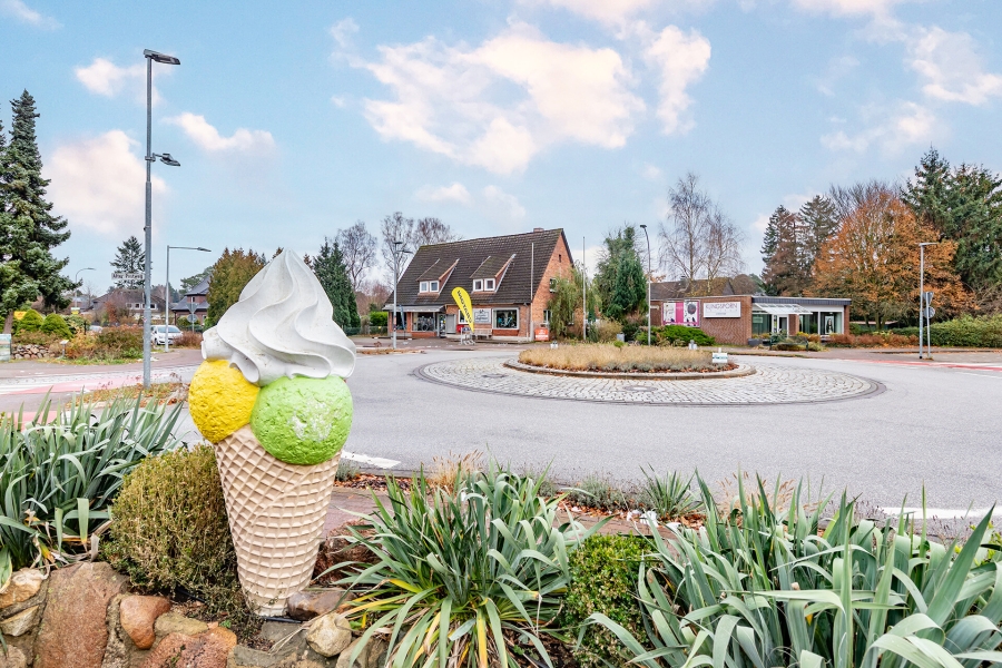 Im Ortskern befinden sich Einkaufsmöglichkeiten für den täglichen und darüber hinausgehenden Bedarf. Kindergarten, Grund- und Hauptschule (fußläufig erreichbar) sind vor Ort, die Realschule und das Gymnasium befinden sich im 4 km entfernten Hittfeld oder Meckelfeld und sind mit dem Schulbus zu erreichen. Die HVV- Bushaltestelle befindet sich direkt an der Straße vor dem Haus.