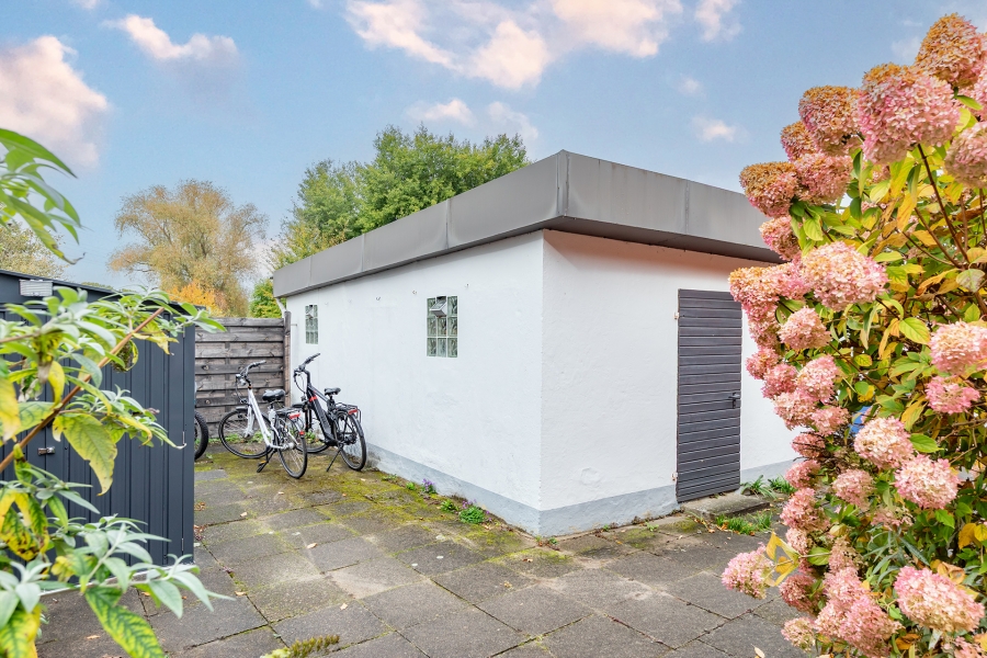 Hinter dem Haus befindet sich ein Garten mit Gartenhaus und Abstellraum.
