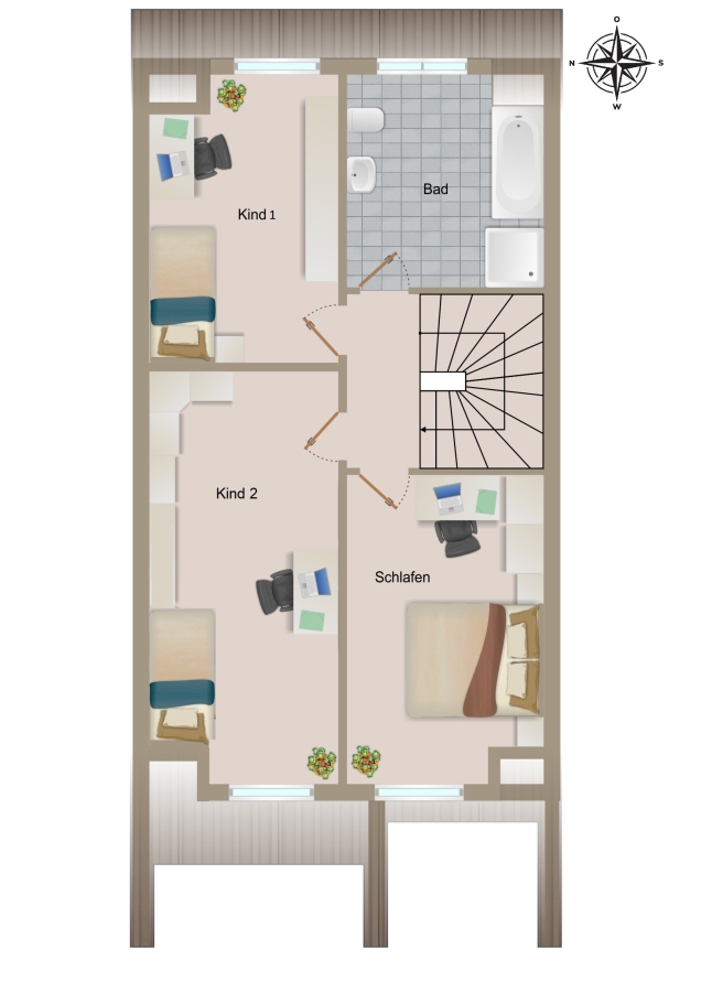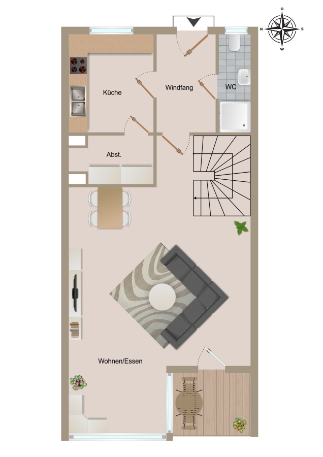 Zusätzlichen Komfort bieten ein Gäste-WC sowie ein praktischer Abstellraum. Der ausgebaute Spitzboden sorgt für weitere Nutzfläche und vielseitige Gestaltungsmöglichkeiten.