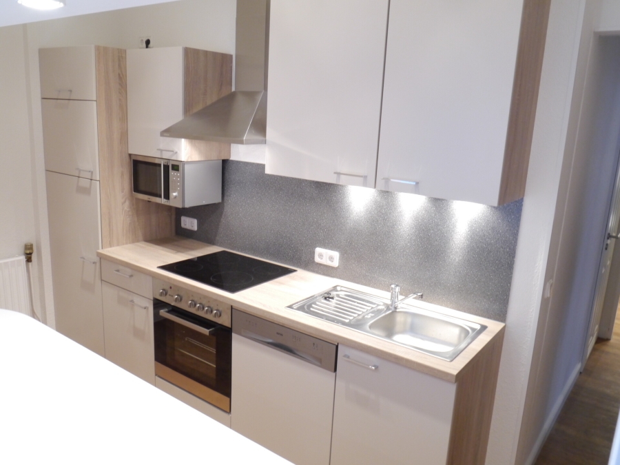 Im 2. Obergeschoss befindet sich eine 4-Zimmer-Wohnung, ebenfalls über die komplette Etage verteilt, mit Einbauküche und Duschbad.