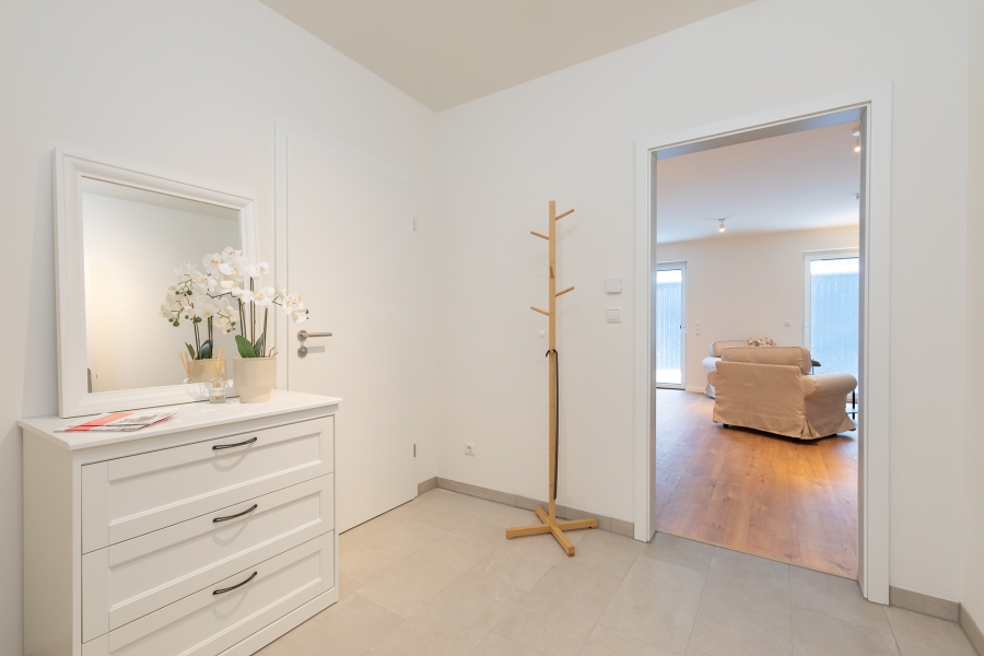 Die vermietete, moderne, 63 m² große 2-Zimmer-Eigentumswohnung bietet einen durchdachten Grundriss ohne lästige Stufen. Sie verfügt über eine Westterrasse, ein Schlafzimmer, eine geräumige Diele, ein Duschbad mit Fenster, einen Abstell/Hauswirtschaftsraum mit Waschmaschinenanschluss sowie einen Carportstellplatz.