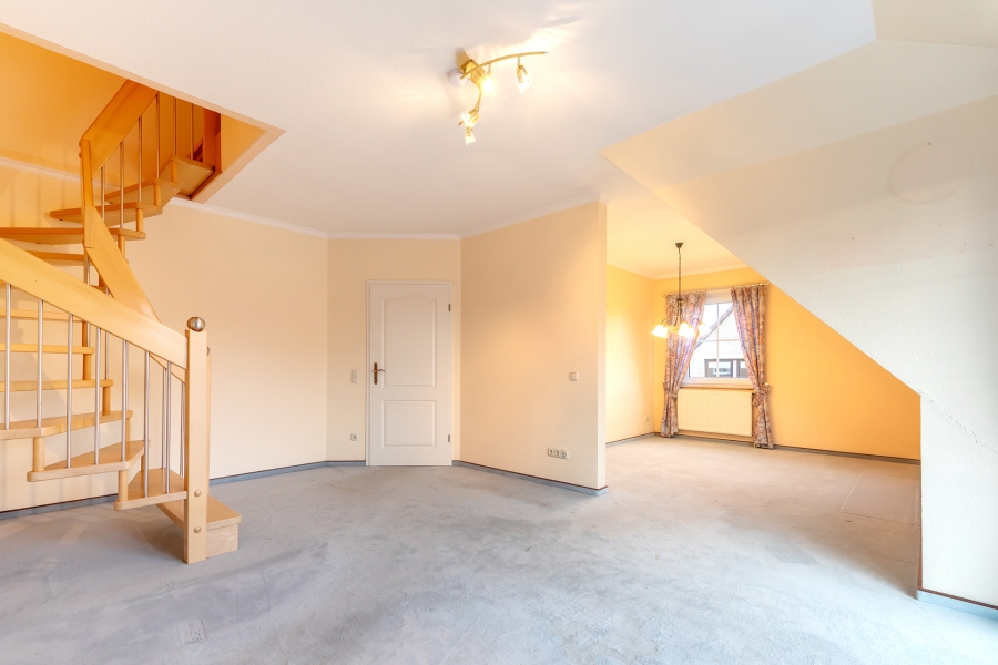 Über das helle und einladende Treppenhaus erreichen Sie das erste Obergeschoss, in dem sich ausschließlich diese Wohnung befindet, Sie genießen somit ein angenehmes Maß an Privatsphäre.