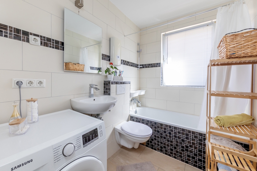 Neben einem Wannenbad steht zusätzlich ein separates Gäste-WC zur Verfügung – ideal für Familien oder Besucher. Eine praktische Abstellnische sorgt für zusätzlichen Stauraum innerhalb der Wohnung.