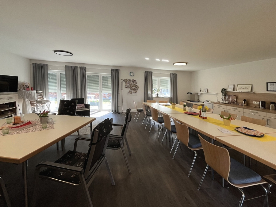 Ein besonderer Treffpunkt ist der Gemeinschaftsraum in einem der Nachbarhäuser. Er bildet das Herzstück der Anlage und lädt zu geselligen Stunden und gemeinsamen Aktivitäten ein. Nach Absprache kann dieser Raum auch für private Feiern genutzt werden.