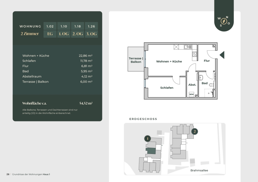 Wohnfläche ca.54,52 m²