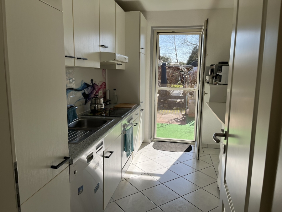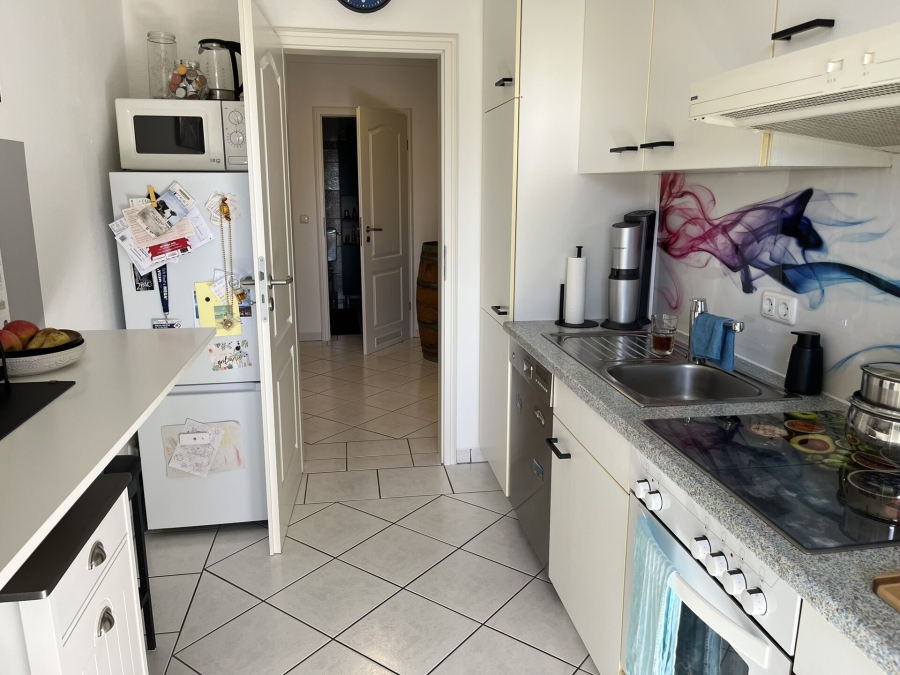 Das moderne Duschbad sorgt für einen angenehmen Start in den Tag, während ein praktischer Wandschrank zusätzlichen Stauraum bietet. Die vorhandene Einbauküche ist funktional ausgestattet und ermöglicht einen unkomplizierten Einzug.