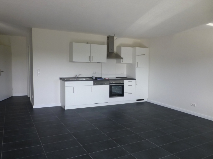 Der offene Wohn- und Essbereich ist mit einer modernen Einbauküche mit den erforderlichen E-Geräten ausgestattet. Von hier aus haben Sie Zugang auf den Balkon mit schönem Ausblick.