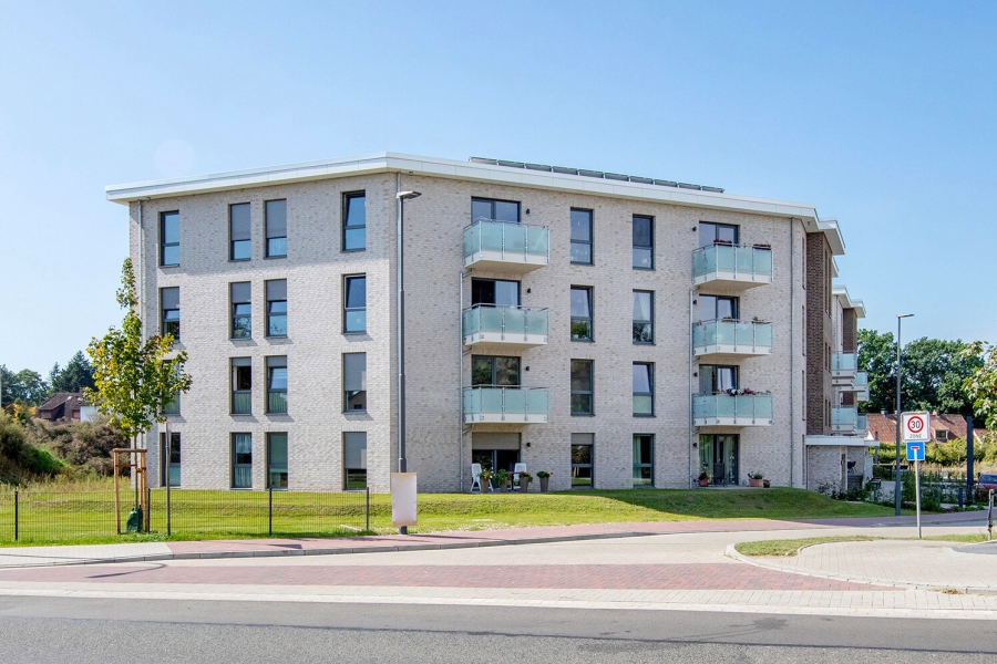 In Meckelfeld, Ecke Am Felde/ Am Kamp, in der Nähe des Bahnhofes, befindet sich dieses moderne und barrierearme Wohngebäude mit 50 Wohnungen und einem Gemeinschaftsraum.