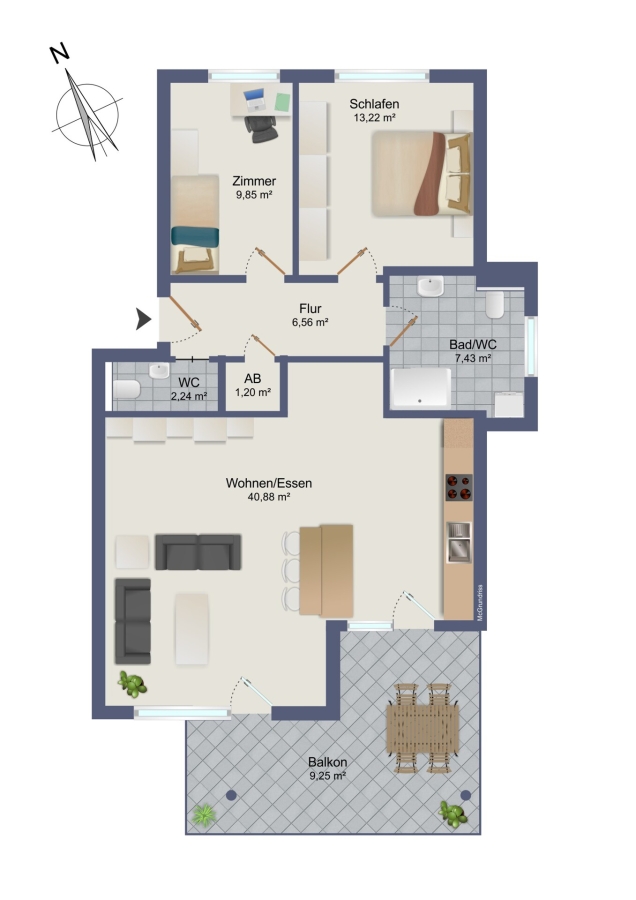 Wohnfläche ca.90,55 m²