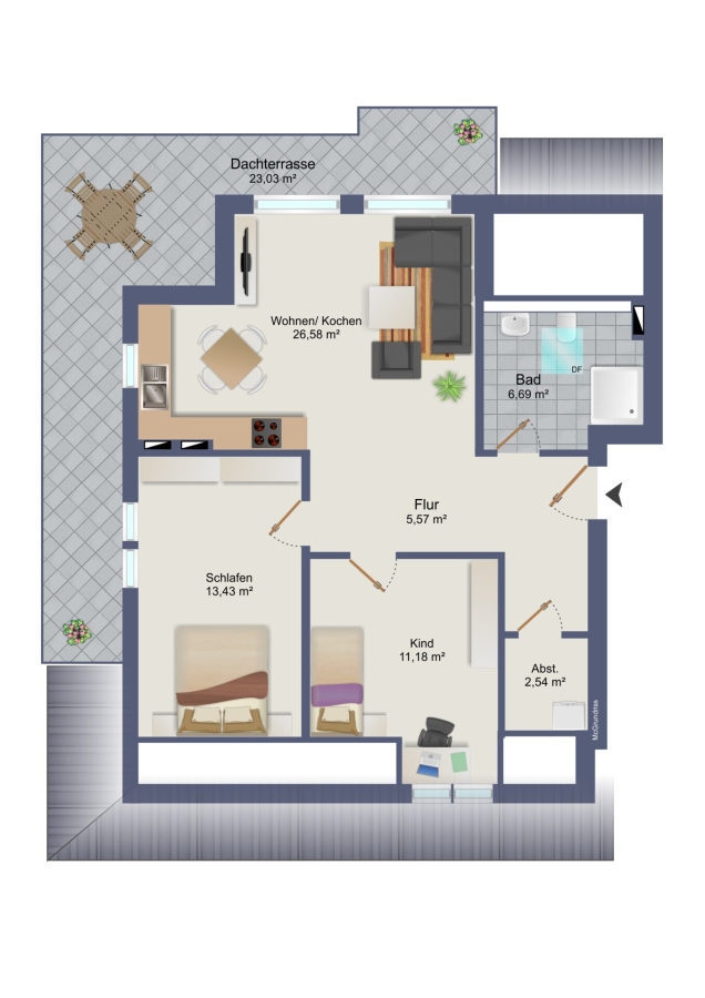 - 3 Zimmer im Penthouse mit Dachterrasse